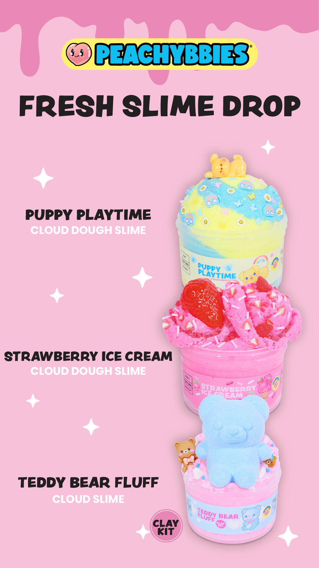 Social Media Assets for use on Instagram to promote the weekly "Slime Drops". Responsible for creating the image assets depicting each slime and the "Slime Menu" of the week. All photos of the slimes and pink base Instagram template were provided by PeachBbies.